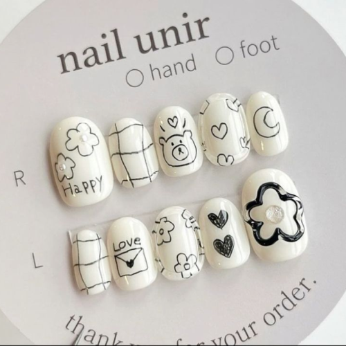 ▼想找可愛感的美甲款式,就絕對不能錯過卡通圖案的手繪風美甲!不論採用簡約黑白配色或繽紛的糖果色系,獨一無二的手繪線條都別具童趣感。