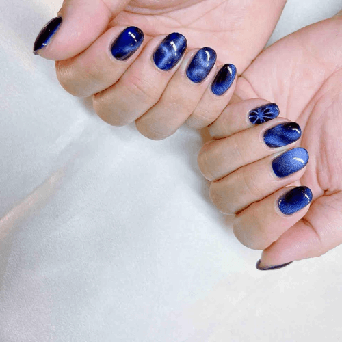 貓眼美甲使用的指甲油含有細小的磁石粉,只要將專用的小磁鐵靠近指甲表面,磁性顆粒就會隨著磁鐵的方向移動,形成獨特的紋理,產生如貓眼石般的光澤感。