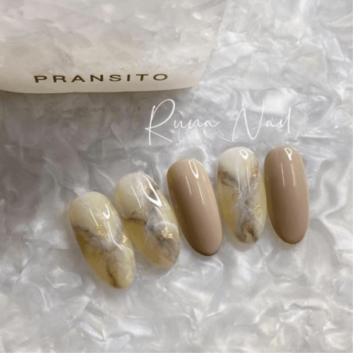 ▼奶油色調、裸色調的大理石美甲別具高級感,耐看又有氣質,是許多人的首選。
