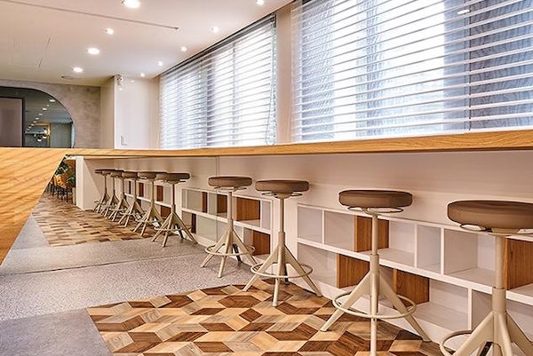 - 2,700K~3,000K的暖黃光可以幫助員工減壓放鬆,適合用於茶水間與休息區