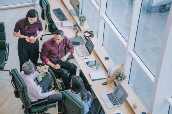 - 需要討論時前往人較少的區域:雖然開放式辦公室提倡就近討論,但如果需要降低噪音干擾,建議您與工作夥伴討論時,前往人員較少的區域,避免其他員工受到影響,時間一久其他員工也會比照辦理,讓開放式辦公室也能是不受干擾的工作環境。