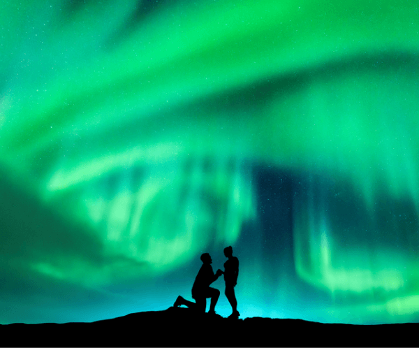 ▲夜空中舞動的極光背景與新人剪影,簡潔又富有儀式感。