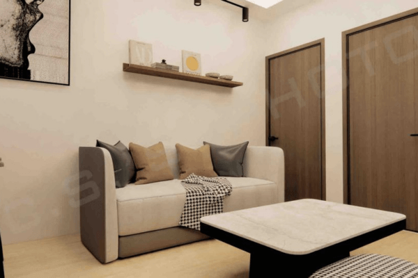 - 小坪數客廳:主色調建議選用淺色系的米白、霧白、淺灰...等中性色調,搭配鏡面材質或淺木傢俱,營造明亮開闊的空間感