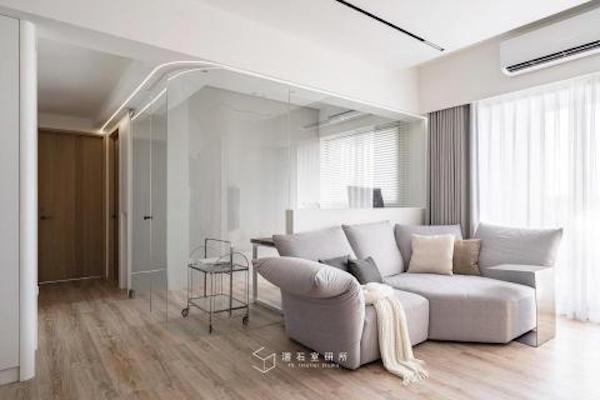 為了降低牆面的壓迫感,加強空間的開闊性,可以選擇使用固定式的玻璃隔間或是活動式的玻璃拉門,固定式的玻璃隔間除了可以區隔出獨立空間外,也不會阻礙採光,可以放大室內的空間感,而活動式的玻璃拉門還能讓室內空間運用更有彈性,是相當受歡迎的隔間方式。