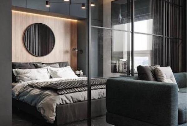 隔間布簾也是相當受歡迎的隔間方式,不僅能夠區隔開放空間與私人空間,且幾乎不佔面積,相當適合小坪數的套房採用。