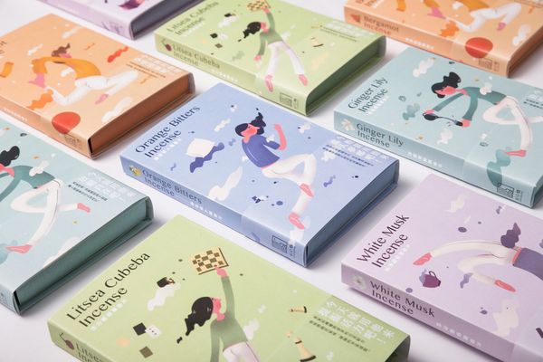 香氛產品設計包裝以插畫風格為主,採用多種色彩和細膩的插圖呈現每種香味的特點,插圖不僅讓包裝更加生動有趣,也讓消費者能夠在視覺上感受到不同香味所帶來的情感價值。每一款香氛都有其專屬的顏色和圖案,適合個人保養品和家居用品市場,能夠幫助消費者在購物時快速識別出最符合自己需求的產品,並建立品牌的獨特形象。