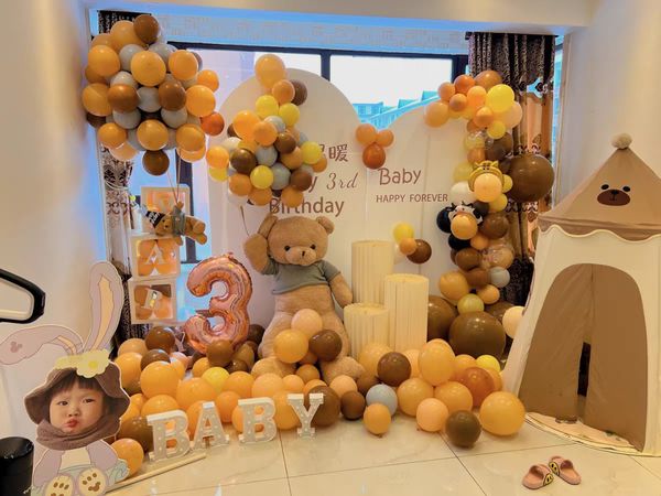 以可愛的泰迪熊和氣球為主題,搭配簡約的背板充滿童趣與溫馨,非常適合小孩的生日派對,為孩子們營造一個充滿夢幻感的場景。
