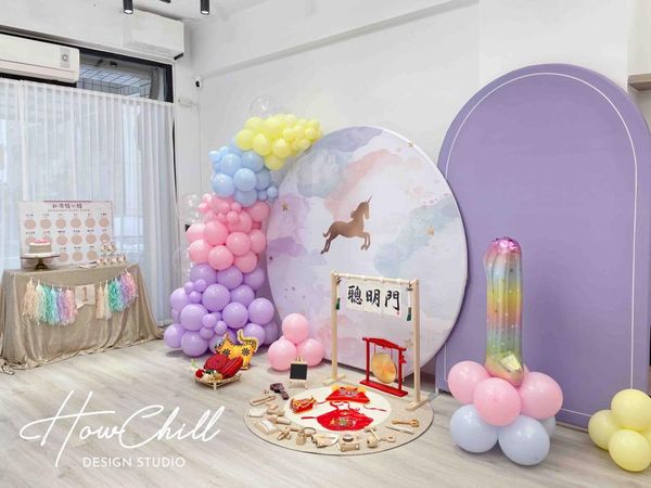 以夢幻獨角獸和彩色氣球為主題,適合用於滿月派對或小孩的生日,為孩子們帶來滿滿的童話夢境感,讓每一位小朋友都有難忘的回憶。