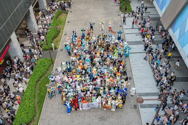 ▲角色扮演者們穿上華麗的服裝,從空中俯瞰,五顏六色的服裝和人群構成了一幅生動的畫面,很好地展示出活動的活力。