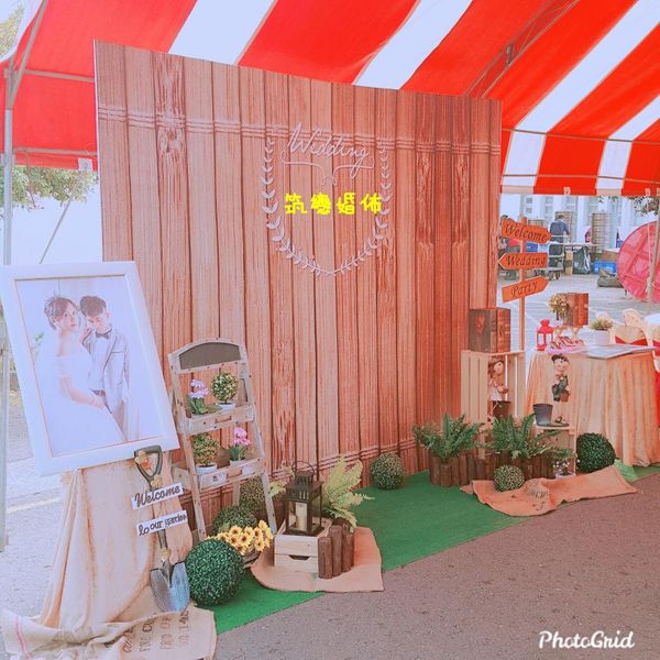 以木紋背景搭配綠植和花藝的婚禮背板設計,為戶外婚禮增添自然與浪漫的氛圍,不僅能融入自然環境,還能營造溫馨而輕鬆的感覺,讓新人和賓客們在大自然的懷抱中享受婚禮的美好時光。