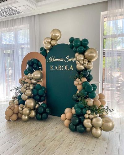 深綠色和金色的搭配營造高雅而大器的奢華感,選擇金綠色調能讓背板顯得格外高雅,提升活動的整體質感,讓賓客感受到莊重而不失時尚的氣息,適合用於較正式的宴會或商業活動。