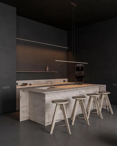 黑色雖然容易給人冷峻的感覺,但通過燈光的調節,可以讓整體空間變得更加溫馨宜人,例如:透過溫暖的間接照明可以在黑色空間中營造出柔和的氛圍,使廚房顯得更為親切;多層次的燈光設計則能增添視覺上的層次感與空間感,讓廚房空間更加豐富。