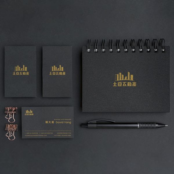 黑色搭配金色元素,象徵專業和信賴,突出品牌在房地產行業中的穩健地位,適合高端住宅和商業地產領域。