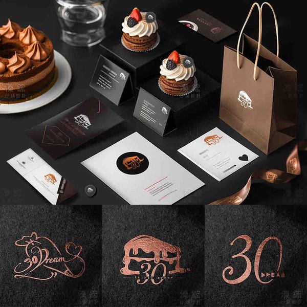相同的標準色,利用不同的標準字與輔助圖形,展現了三款Logo設計。印刷以黑色和銅色壓印設計,復古質感突顯品牌的歷史與經典甜點的傳承,呈現高端而富有情感的質感。