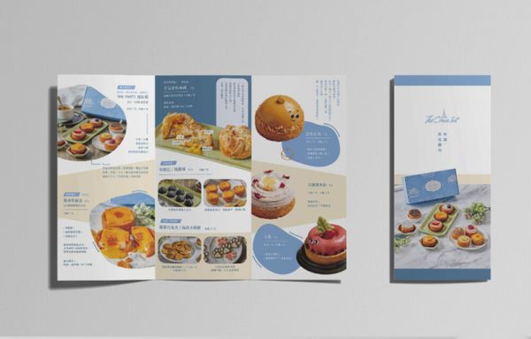 甜點宣傳摺頁的設計透過細緻的配色和精心的版面配置,讓每一款甜點顯得更加誘人。摺頁中的圖片質感極高,能夠有效吸引消費者的注意,並激發他們的食欲,搭配簡潔的文字說明,整個手冊的設計感高雅,是甜點店推廣品牌的理想選擇。