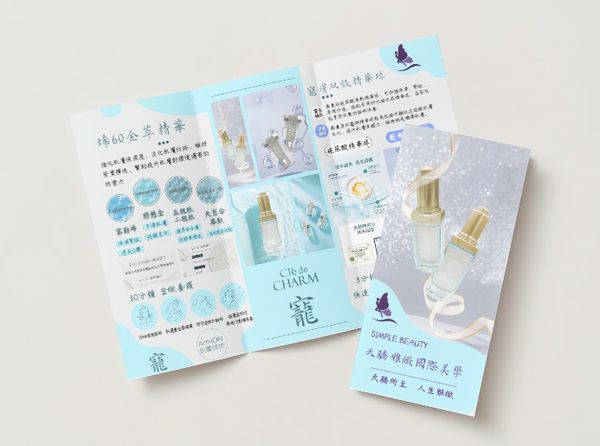 美容產品介紹摺頁運用柔和的色調和精美的圖片營造高品質感,每個產品都搭配詳細的介紹和使用方法,讓讀者更容易理解產品的特點和優勢。高質感的設計能夠有效增加消費者對產品的信任感,並提升品牌的高價形象。