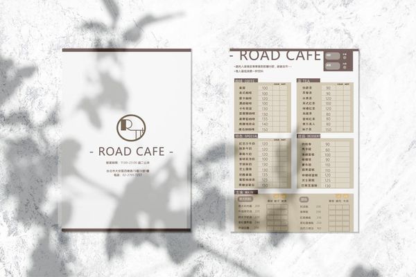 ROAD CAFE菜單展示透過簡約的菜單、鮮明的品牌Logo呈現品牌理念,讓顧客對品牌留有深刻印象,並進一步增強品牌的吸引力。