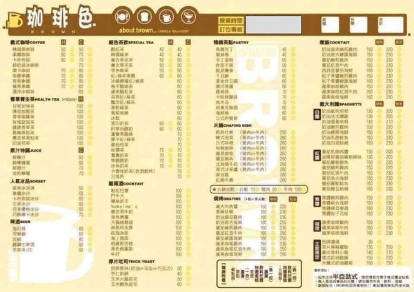 菜單採用咖啡色與溫暖的黃色調,營造復古與舒適的咖啡廳品牌氛圍,適合想營造溫馨、懷舊感受的咖啡廳品牌。