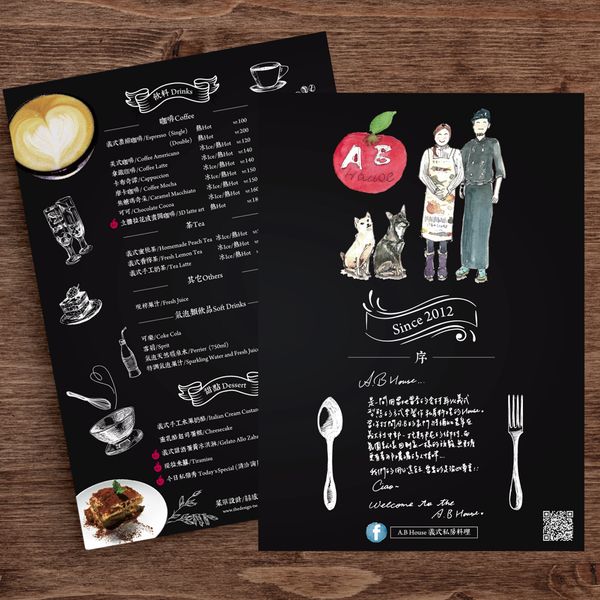 手繪插畫與文字結合設計咖啡廳菜單,能夠提升菜單的可讀性並增強品牌的藝術感,適合具有文化底蘊並強調創意氛圍的咖啡館品牌。