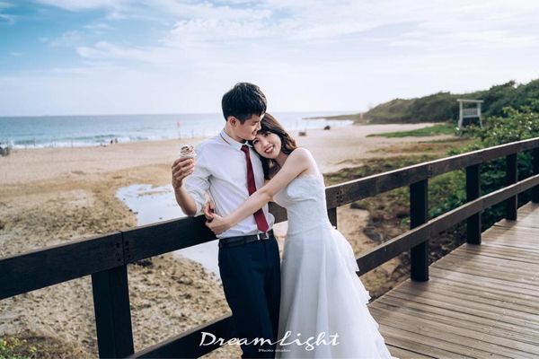 海邊總是充滿了自由與隨性的氣息,這也是輕婚紗拍攝中常見的場景之一。海風輕拂,新人之間的互動在這樣的環境下顯得更加自然。海邊的開闊視野和湛藍的海水,是輕婚紗風格的完美背景。