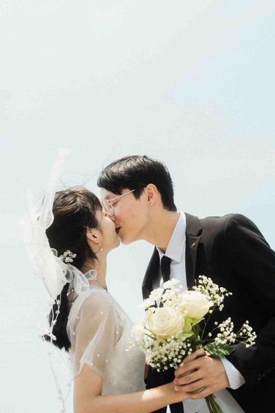 ▲照片捕捉了新人在陽光下甜蜜親吻的瞬間,這樣的畫面充滿了愛的溫度,讓人心生感動。陽光透過他們之間,照亮了每一個甜蜜的表情,這種自然的感覺最是動人。
