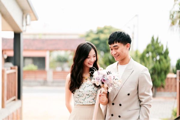 ▲照片展現了新人在戶外手牽手漫步的溫馨畫面,這種自然的互動展現了他們之間的甜蜜與愛意。這樣的輕鬆時刻,無需過多修飾,就是愛的最佳表達。