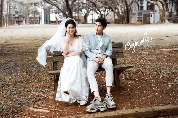 ▲照片展示了新娘身穿輕便婚紗坐在公園長椅上,與新郎一起享受悠閒時光,這樣的輕婚紗風格充滿了愉快的氣氛。這樣的輕鬆姿態讓人感受到生活中的幸福,是愛的最好寫照。
