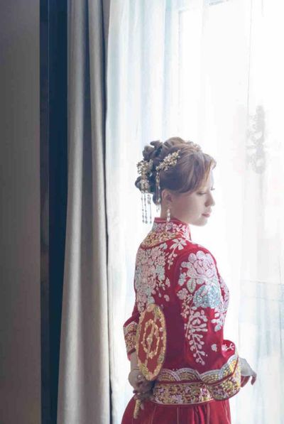 ▲照片捕捉了新娘站在窗邊時的靜謐與美麗。光線柔和地從窗戶灑進,勾勒出新娘的輪廓,營造出溫馨而富有詩意的氛圍,這樣的拍攝畫面讓人感受到新娘內心的平靜與對未來的期待。