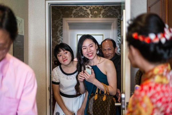 ▲照片展示了親友們在門口滿心期待地看著新娘的畫面,這些自然的笑容與滿滿的祝福是最值得被記錄的瞬間。這些真摯的情感不僅是對新人的祝福,也是家庭之間深厚聯繫的體現。
