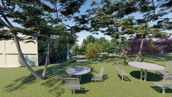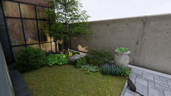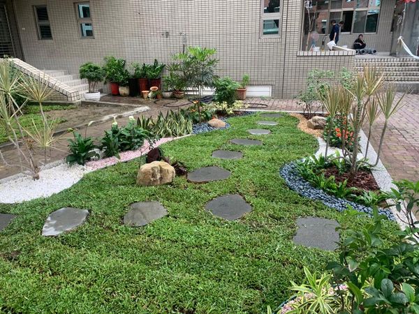 - 自然元素的運用:草地和灌木可以營造出一個寧靜、自然的環境,而石頭的佈置則增添了庭院的質感。草地可以提供一個開放的空間供人活動,而灌木和石頭的佈置則讓整個空間更加有層次,並且營造出一種自然的美感,讓人在庭院中可以徹底放鬆。