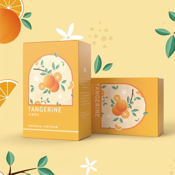 果茶包裝以紙盒設計,選擇清新亮麗的色彩吸引目光搭配柑橘的圖樣設計,完美呈現產品的新鮮、果香以及活力感。