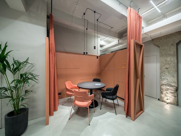 ▲隔間簾在商業空間中的靈活應用,可調整工作環境的私密性與開放性。
