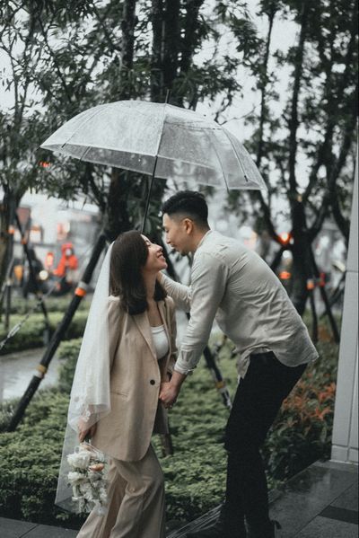 為雨天的婚紗照增添甜蜜感,捕捉雨中漫步的真實瞬間。雨天往往讓人避而遠之,但在攝影中卻能帶來意想不到的浪漫氛圍。