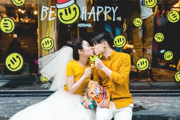 黃色系服裝搭配童趣背景,能夠展現出新人青春洋溢的一面(參考Photo 10)。明亮的色彩不僅能讓畫面更生動,也展現出新人間的歡樂與活力。