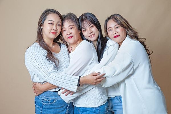 家庭合照中,擁抱和依偎的姿勢可以讓照片更有情感,例如家人之間互相擁抱的瞬間,可以突顯出家庭的溫暖和親密。