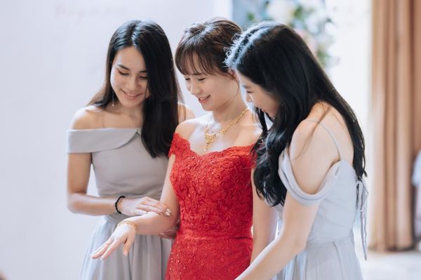 拍攝姐妹團在文定儀式中的互動,展示輕鬆愉快的氛圍,捕捉閨蜜之間的友誼與喜悅,讓照片充滿活力和溫馨。姐妹團之間的互動,如:幫助新娘整理禮服或一起開心笑鬧的瞬間,都是展現友誼與支持的最佳時刻。姐妹團的笑容和她們之間的相互支持,能夠為新人帶來更多的勇氣和力量,這些場景都是值得被珍藏的記憶。