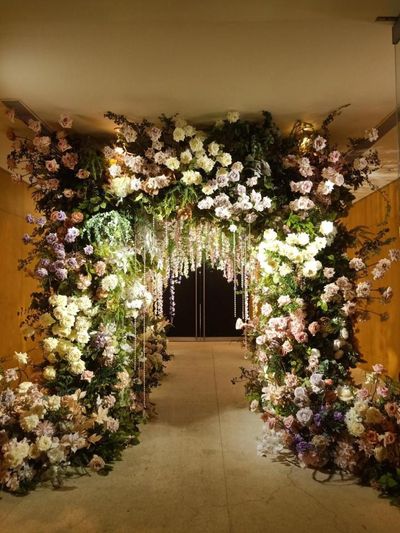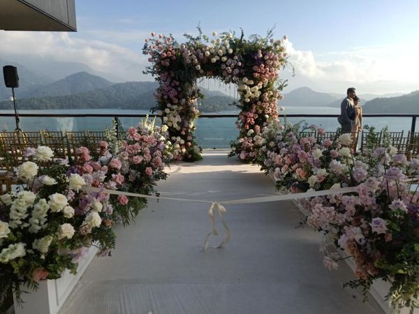 您可以利用花藝拱門來作為婚禮入口的亮點,增加儀式感。推薦使用白色、淡粉色、綠色的花材,以呼應大自然的色調,讓婚禮更加和諧且充滿生機。花藝拱門不僅是婚禮的裝飾,還是一個象徵著愛與幸福的入口,讓新人與賓客在這片花海中感受到滿滿的祝福。