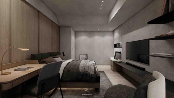 在現代臥室中,簡約風格的層板設計能夠增強空間的整體感。無論是作為書籍的收納區,還是展示個人收藏,層板都可以靈活運用,同時又不會讓臥室顯得擁擠,讓臥室空間顯得寧靜而舒適。此外,層板的擺放也可以根據個人需求靈活調整,讓空間充滿變化的可能性,同時維持簡約而不失溫馨的氛圍。