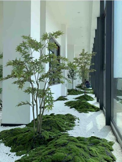 苔蘚是日式庭園的一大特色,能帶來濃郁的自然感和濕潤的氛圍。苔蘚的使用常見於庭園的地面和石塊上,象徵著生命的持續和自然的沉靜。