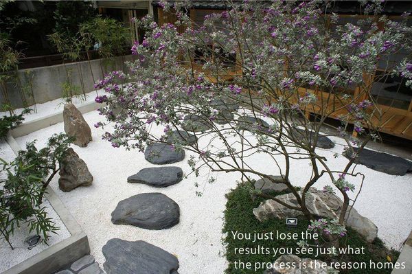 白色砂石和天然石塊是日式庭園的重要組成部分,象徵著自然的力量與純淨之美。石景的配置不僅能增添庭園的層次感,還能打造出山川河流的意象,模擬大自然的景象。