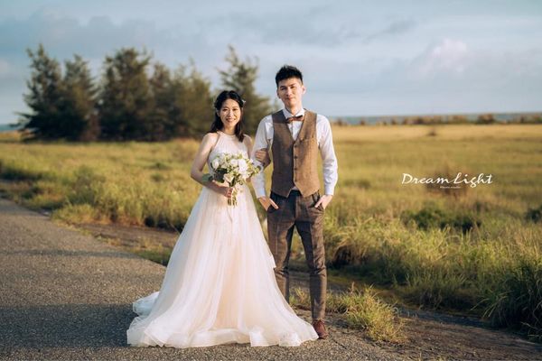 ▲上圖展示了新娘與新郎在田園風格的場景中,陽光灑下,田野的背景與新人形成一幅悠閒而浪漫的畫面。