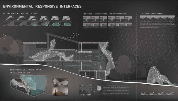 環境響應建築的設計強調建築與自然環境之間的互動,以排版設計展示將自然元素融入建築的方式,透過圖示和圖形表達建築與自然的協同關係。