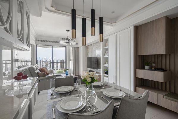 輕奢風是以簡約俐落的線條感、開放式格局或明確的區域分界…等設計手法,使空間自然延伸且更具生活機能。精心設計的動線規劃不僅提升了居家便利性,更能在視覺上拉伸空間比例。例如:結合客廳與餐廳的開放式格局,不僅讓生活更有流動感,也展現一致性的設計語言,展現出優雅且大器的室內氛圍。