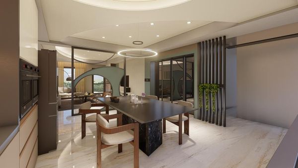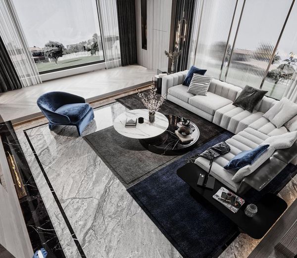 大理石地板的自然紋理和光澤使每一個空間都顯得獨特且富有高級感。它能瞬間提升整個客廳的氛圍,讓人感受到奢華與精緻。