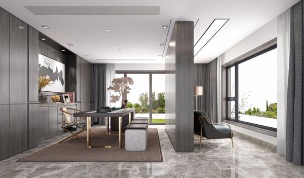 ▲大理石的光滑質感搭配灰色調設計,營造出高雅的氛圍,非常適合在家辦公或閱讀。