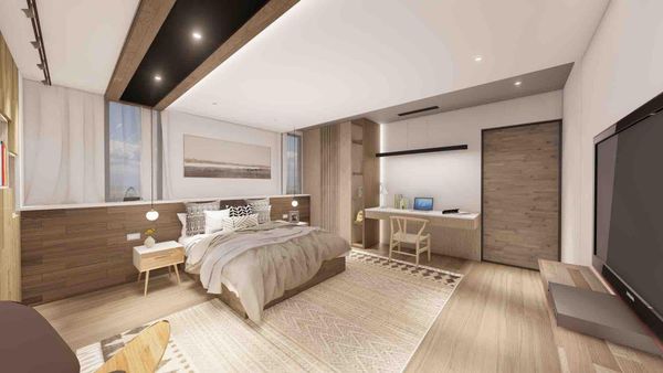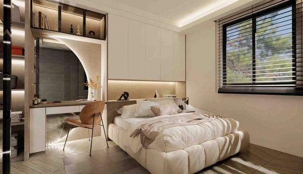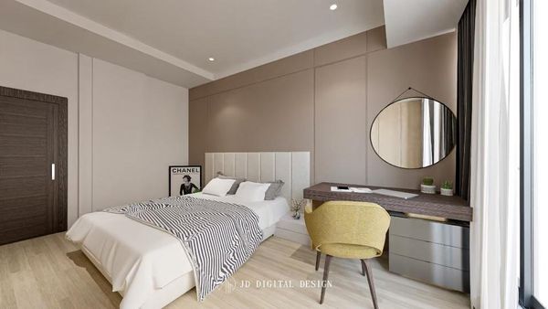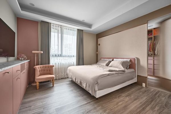 床具和椅子的選擇同樣需要與房間整體色調相呼應,推薦柔軟材質的家具來提升舒適感。像是奶茶色的靠墊、柔軟的床鋪,以及設計感強的椅子,都能讓整個臥室空間顯得更加溫暖、放鬆。選擇一些具有質感的布料,如絨面或棉麻材質,能讓房間顯得更加高級和舒適。同時,在椅子的選擇上可以加入一些設計元素,如弧形靠背或獨特的椅腳設計,以增加房間的視覺亮點。這樣的家具佈置可以讓奶茶色裝潢設計更顯輕奢感。
