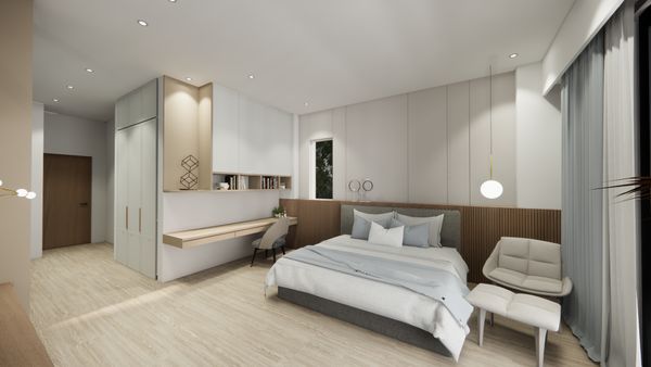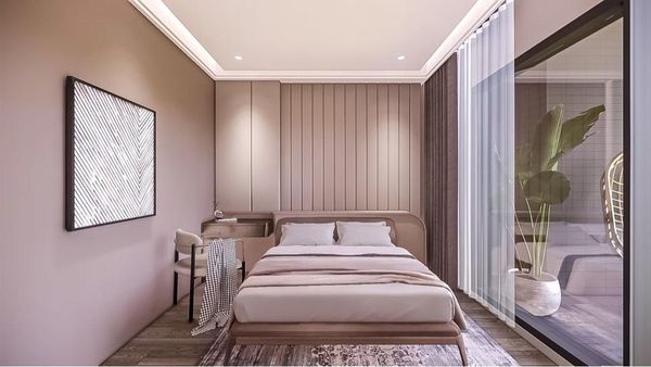 使用柔和色調佈置的臥房能營造出溫暖乾淨的氛圍,但有時可能會略顯單調,透過選擇一些抽象的畫作、幾何圖案的壁掛、有設計感的抱枕、或者富有藝術氣息的雕塑…等軟裝擺飾,使臥室空間更加個性化,不僅增添了創意感與藝術感,還使房間風格更具吸引力和層次感,從而讓臥室更加具有個人特色。