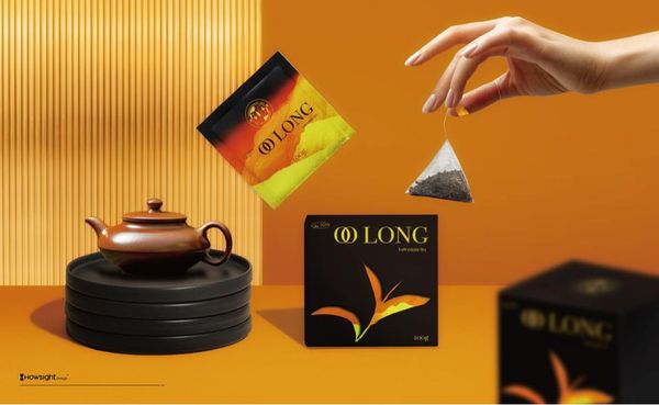 烏龍茶包裝禮盒以黑底與橙色、黃色的亮眼的圖案、線條搭配,給人高雅且神秘的感覺,並以橙黃色象徵豐收與活力,而黑色則代表著深度與品質,讓整體包裝充滿層次感,既有視覺上的衝擊力,又不失典雅。包裝上的圖案設計靈感來自於東方文化,加入了茶葉的圖騰與流線型的元素,進一步增強了產品的文化內涵,能夠成功地吸引對文化、品質以及生活品味高要求的消費者。