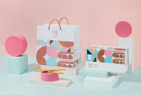 柔和的粉色與幾何圖案既現代又精緻,帶給人溫暖和舒適的氛圍,適合手工點心及休閒食品。粉色使包裝充滿柔和與親切感,可感受手工製作的用心與細膩;幾何圖案則增添現代的設計元素,使包裝更加時尚與有趣。透過精美的禮盒包裝設計,能傳遞品牌對細節和品質的重視,讓消費者在品味美食的同時,感受到品牌的用心。