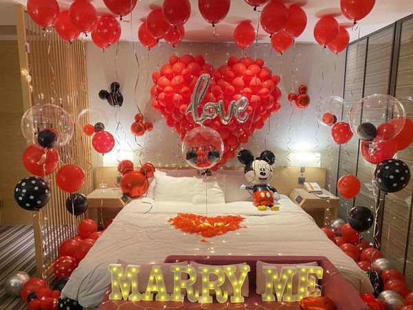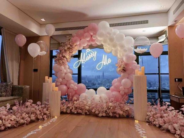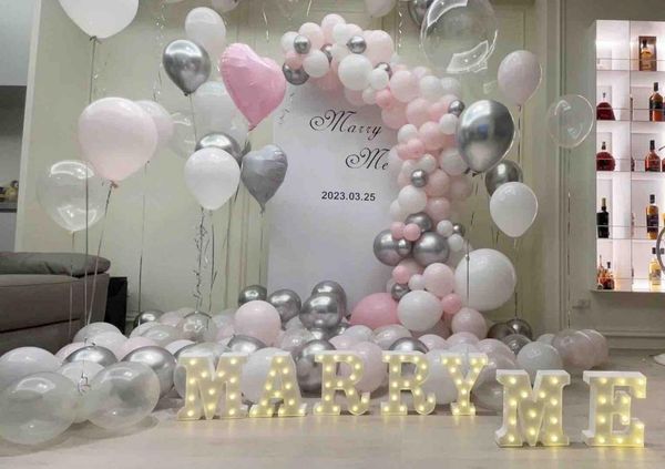 氣球拱門和拱門花架在求婚佈置中扮演著重要的角色,它不僅可以增添場地的立體感,還能成為場景的亮點,讓整個佈置更加生動有趣,也能展現出求婚者的用心,氣球拱門不僅可以吸引視線,還能營造出一種歡樂的氣氛,讓場景更加豐富多彩。造型氣球的使用也能增添更多趣味和視覺效果。